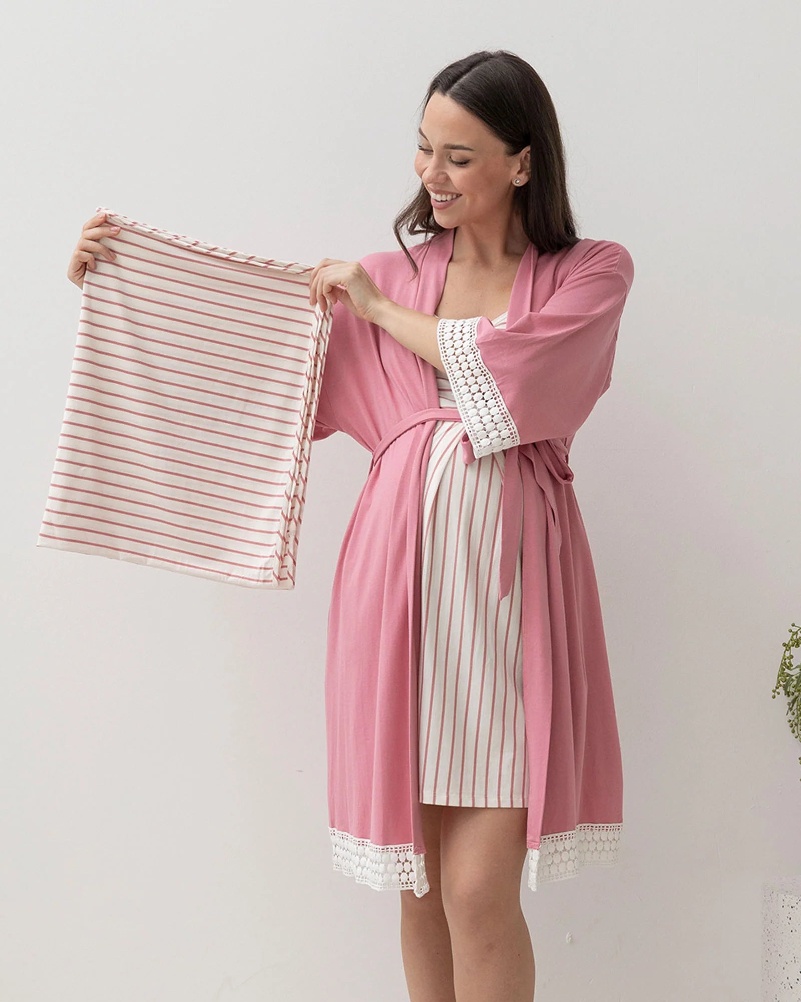 The Angel Maternity 3-Piece Birthing and Nursing Robe Set is perfect to snuggle up in before and after your delivery! This gorgeous design with lace trim, made with a super soft material is essential to your hospital stay. The perfect weight to keep you comfy and cosy in the freezing temps at the hospital!