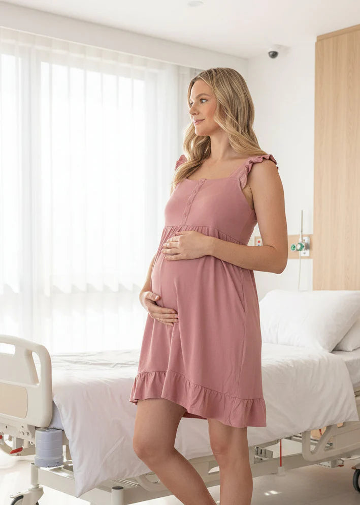 Our Best-selling Grace Birthing Gown is back! Featuring snap buttons for easy feeding access along the front and easy epidural / back access along the back. Make your birthing experience stylish, comfortable and practical with this gown.