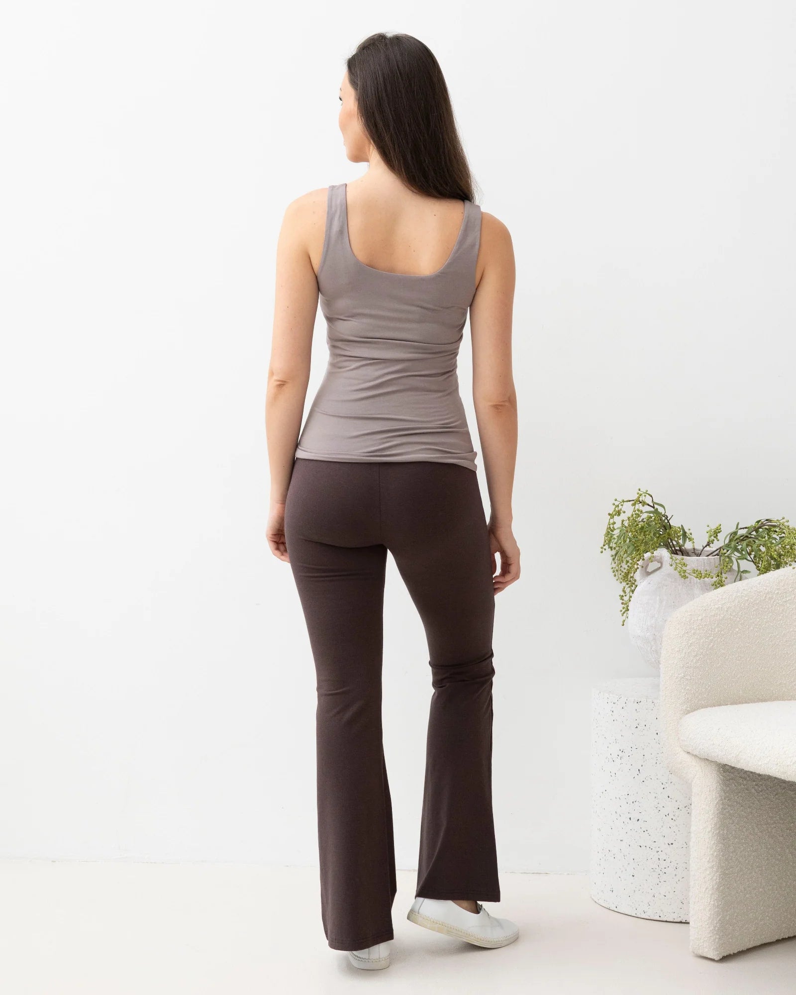 These black bootcut maternity bamboo/cotton pants are a versatile choice for your pregnancy with a bump-accommodating pull-on waistband. Designed with comfort in mind, these maternity leggings feature a versatile black flare style that accommodates your growing baby bump with a convenient pull-on waistband.